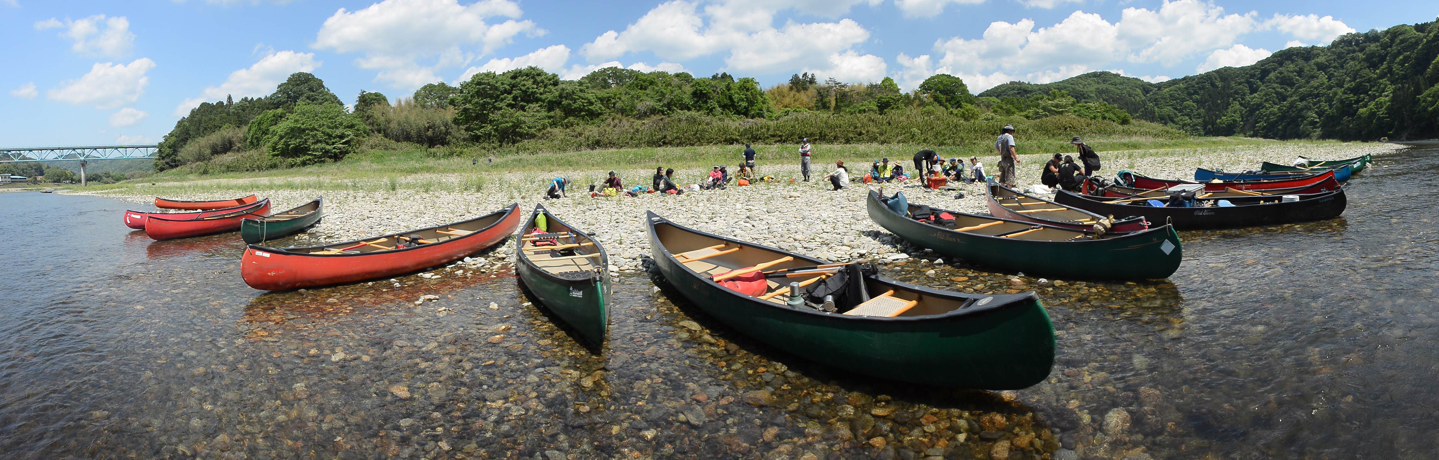 那珂川 。 2017年5月18 〜21日 栃木県の那須を源流とし、茨城県にかけて流れる那珂川。毎度おなじみの四万十塾の飛び豆カヌーツアーをサポート。約1週間、水の上、陸の上と水を中心に集まった仲間たちとの一緒の時間を楽しんだ。(上の写真はクリックで拡大するよ。) 緩やかな流れでゆっくり練習ができたり、またその練習の成果を実践できるある程度の流れもあったりと、那珂川は初めてカヌーに乗る人にとってはとても良い条件が揃っている川だ。 ここ那珂川、東京からアクセスできる距離にこんなに自然豊かな川の姿が残っている事を思い、いつも「貴重な川だなぁ」と感じる。今回は水の上に浮かびながら、川を下る意味、パドリングを上達させる意味、このような事に時間を使う意味など、普段あたりまえのようにしてきた事がなぜ必要なのかってところを、はっきりと言葉に置き換える作業をしてみた。自分から出てきた言葉を聞いて、そっかぁそういう事なのかぁ・・・と1人でうなずいているのである。(匠)