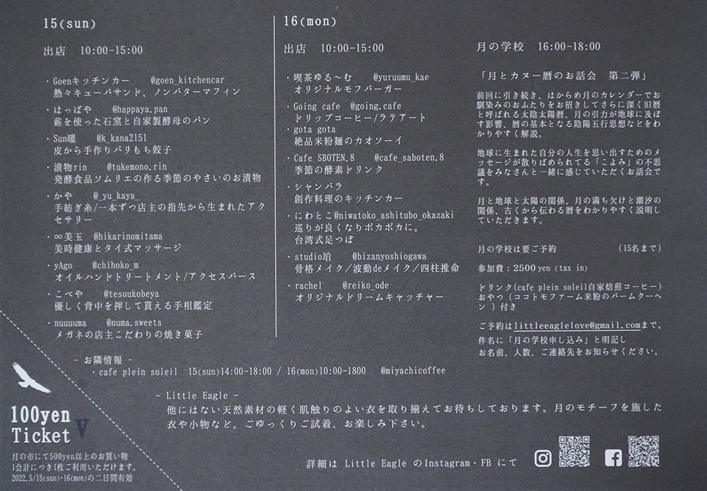 関連サイト : Little Eagle ・ 純喫茶 太陽がいっぱい ・ ココトモファーム 清香さんのWEBサイト ・ OCEAN |