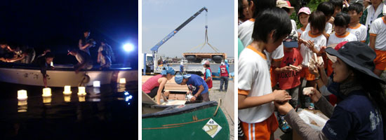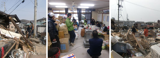 2011年7月〜 はからめの鈴木匠とよし子です。 震災が起きてから約5ヶ月。動き回っている自分達の視点から見ると「もう5ヶ月」と思います。が、日々、避難所などで被災された皆様と話しをしているとやはり「まだ5ヶ月」しか経っておらず震災直後とさほど変わりの無い生活を送っている方もまだまだいらっしゃるのが現実です。街角に見える瓦礫は少なくなりましたが、全壊、半壊の家が取り壊され、いくつもの土地が新地(さらち)となっていく姿を見ると、あの風景を忘れてはいけない、絶対に忘れてはいけないと、風景というか被災地で暮らす人間の気持ちをじっくりと心に落とし込もうという作業をつい行なってしまいます。 私達が活動をしている石巻。市街に比べ牡鹿半島の小さな集落では、まだまだ「復興」の最初の一文字「ふ」の第一画目くらいしか感じられていない方々も沢山いらっしゃいます。長期で活動していく中で生まれてくる地元の方々との繋がりを大切にしながら、更なる支援を続けて行きたいと思っております。 また、現地石巻に集まった仲間と一緒に「ボランティア支援ベース絆」という団体名で活動をしています。ボランティアのコーディネートを始め、Webや他デザイン、企画の立ち上げ、などなどその場その場で出てくる様々なニーズに対応しております。 石巻ボランティア支援ベース絆のWEBサイト