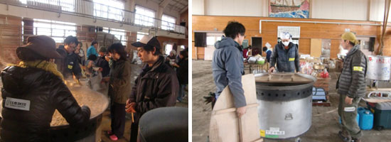 2011年3〜6月 はからめの鈴木匠とよし子です。 3月11日、福島県塙町のはからめランドにて震災にあいました。 私たちは怪我もなく無事です。 心配してくださった方々、ありがとうございます。 ご存知の通りの原子力災害。放射能、核というものに対しては いつも行動を共にしている私たち2人が同じ方向へ進もうとする意思、そして 精神までも壊される恐怖感を感じます。 強さなのか、弱さなのか、未来のこと、、、、、 涙涙の時間を過ごしました。 が、今、2人同じ方向を向いて動いております。 私たちは現在、宮城県石巻市を中心に救援活動を行っております。 そこでぜひ、全国のはからめと繋がりのある方々、活動資金のカンパを募らせてください。 すでにカンパしていただいた方々、どうもありがとうございます。 皆様のお気持ちを、被災された方々の笑顔に変えさせていただきます。 私たちが行っている支援は、物を配り続けるだけの支援ではありません。 森の中で、電気やガス、水道がない場所で生活していた私たちに出来ることが 必ずあると感じ日々活動をしております。もちろん笑顔と共に。
